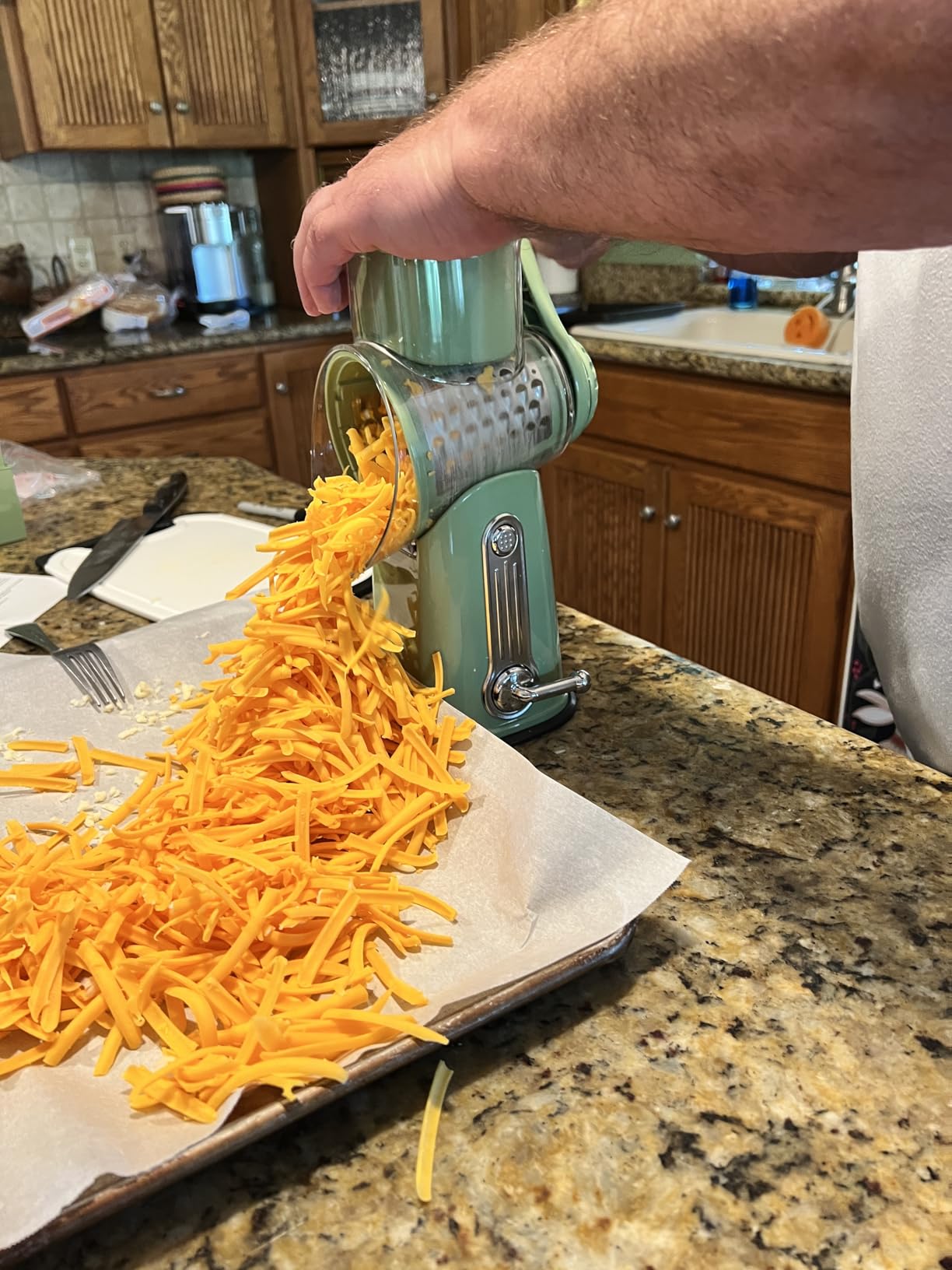So glad I got this cheese/vegetable slicer and grater after seeing it advertised on Facebook. I love this thing and I love the green color. I know I will get a lot of use out of it.