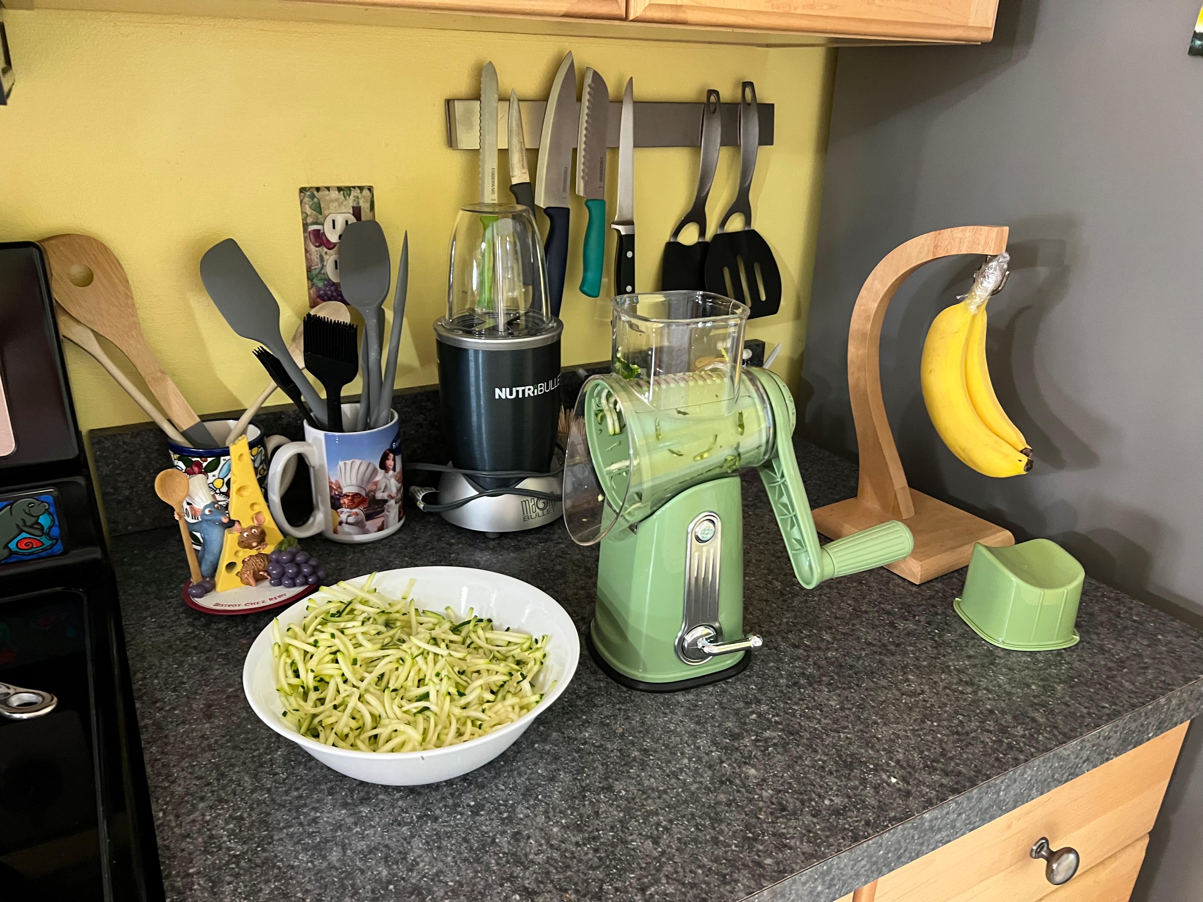 I was so excited to get this product! I had to use it right away. I cleaned it as directed, put it together, changes the blades and threw in a potato. I was happy with the results, it is a fantastic grater, with 1 exception…. It did NOT stay suctioned to my countertop.